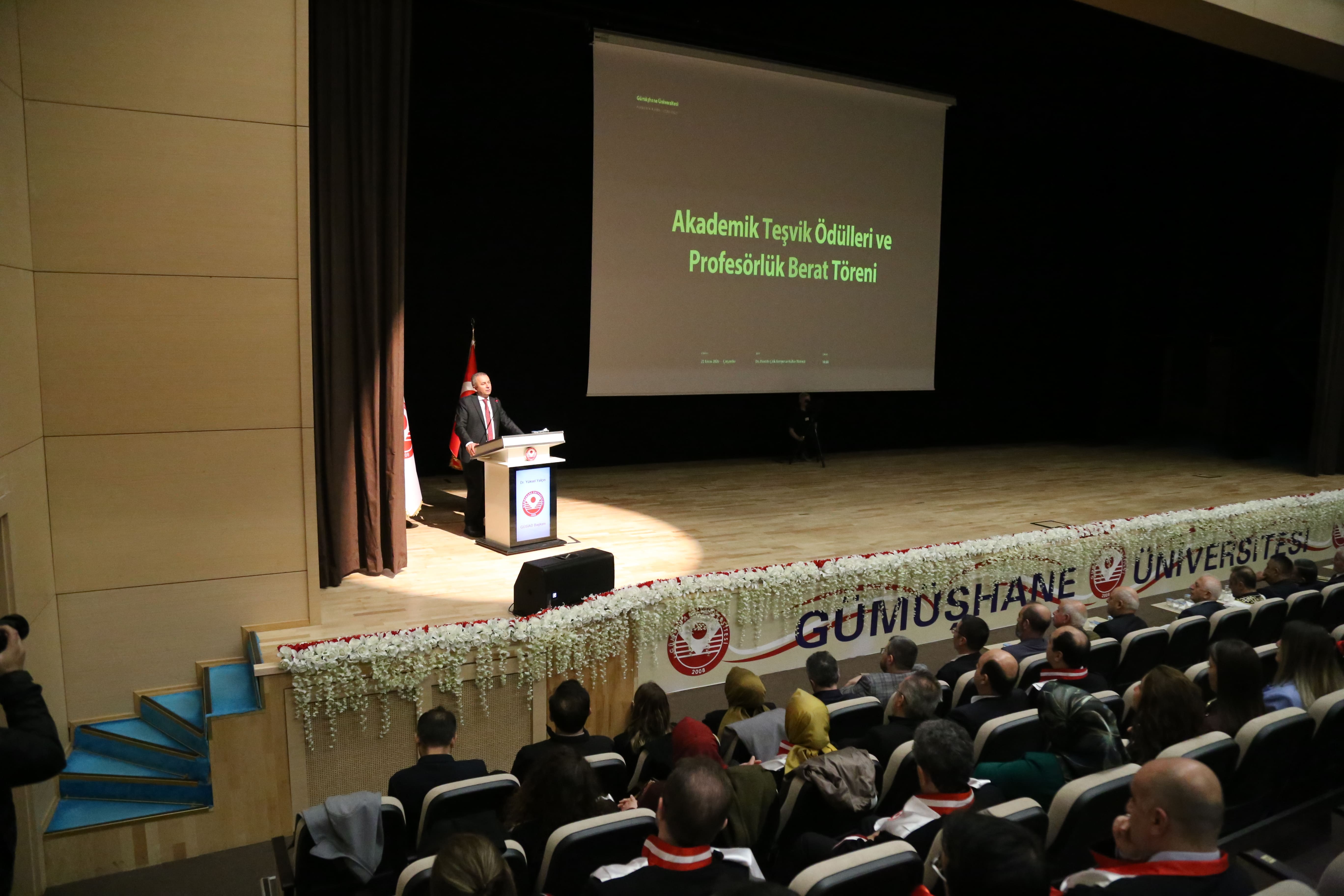 Gümüşhane Üniversitesi Kalkındırma Vakfı iş birliğiyle düzenlenen Akademik Teşvik Ödülleri ve Profesörlük Berat Töreni ile bilimsel üretimi ve akademik emeği taçlandırdık.