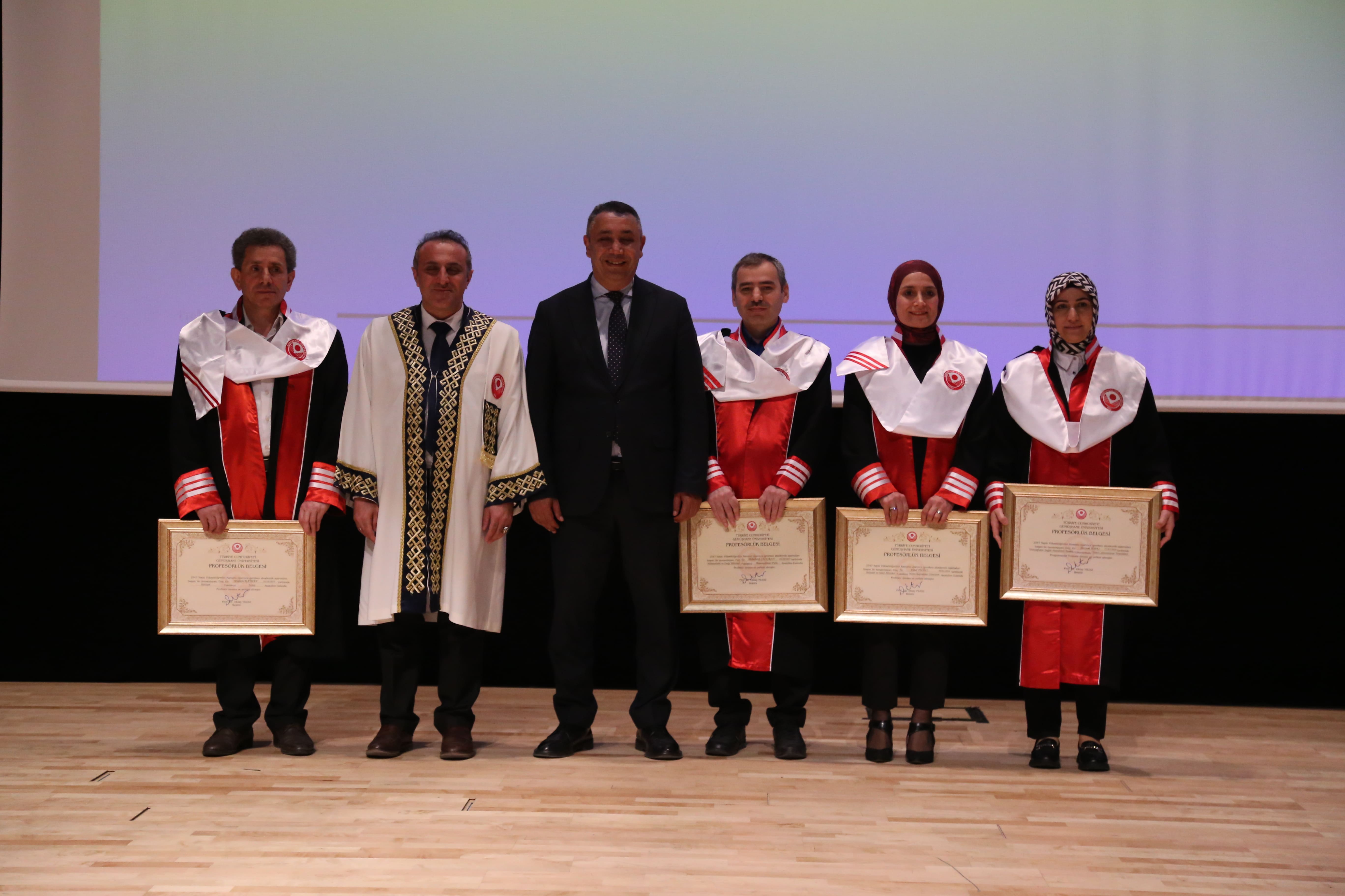 Törenin açılış konuşmasını gerçekleştiren Rektörümüz Oktay Yıldız, profesörlüğün akademik hayatın en önemli dönüm noktalarından biri olduğunu belirterek, bu payenin bilim üretiminin en verimli evresini temsil ettiğini ifade etti. Profesörlüğün bir durma noktası değil, yeni bilim insanları yetiştirilen bir dönem olduğuna dikkat çeken Rektörümüz, akademisyenleri üretkenliği sürdürmeye davet etti.
