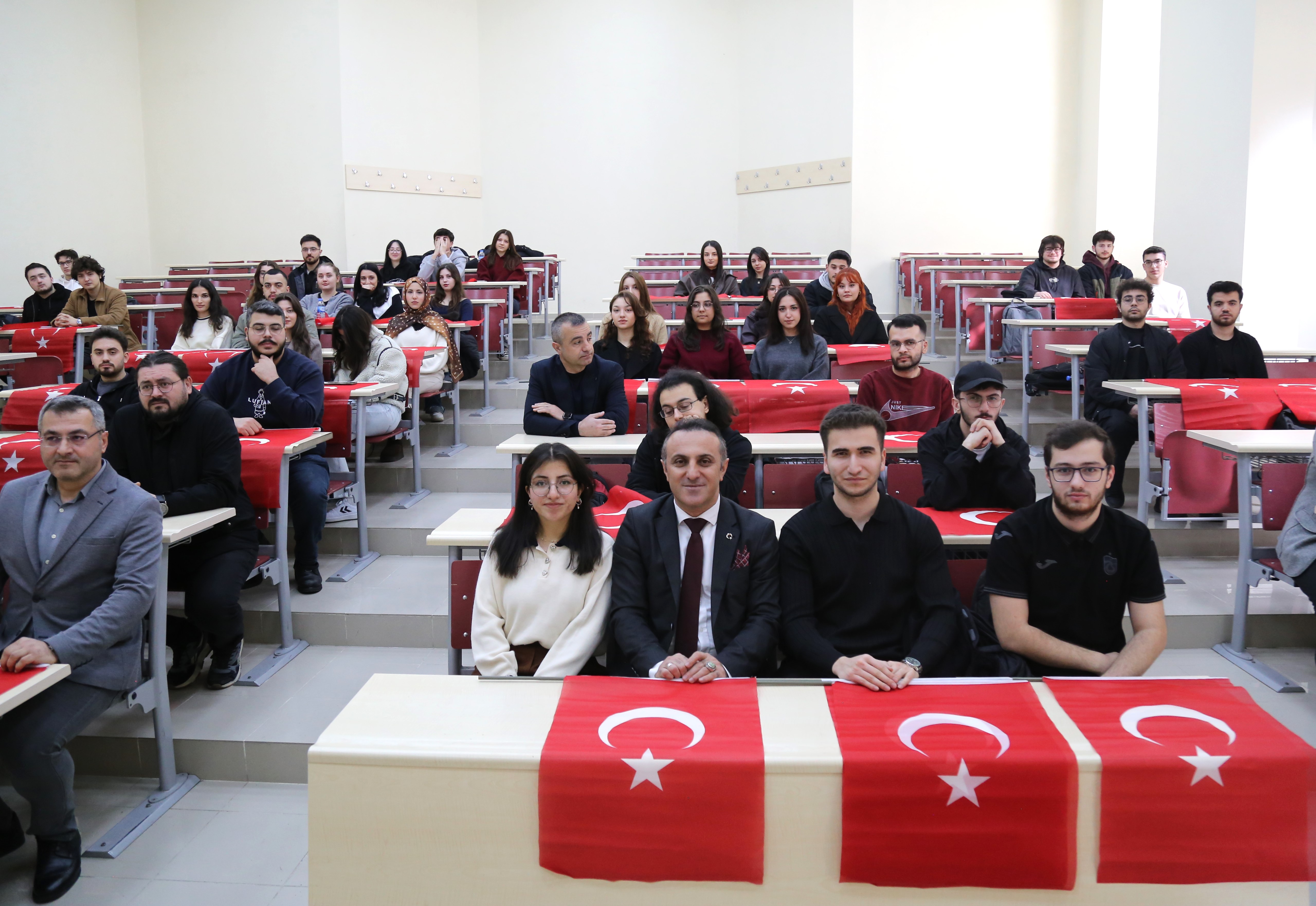 Gümüşhane Üniversitesi Senatosu tarafından alınan karar doğrultusunda, bahar yarıyılının ilk günü üniversitemiz bünyesindeki tüm akademik birimlerde günün ilk ders saati “Türk Bayrağı” konusuna ayrıldı. Uygulama kapsamında, derslere giren öğretim elemanları tarafından Türk Bayrağı’nın sembolik anlamı, tarihsel süreci ve 2893 sayılı Türk Bayrağı Kanunu çerçevesinde kullanım ve korunmasına ilişkin esaslar öğrencilere aktarıldı.