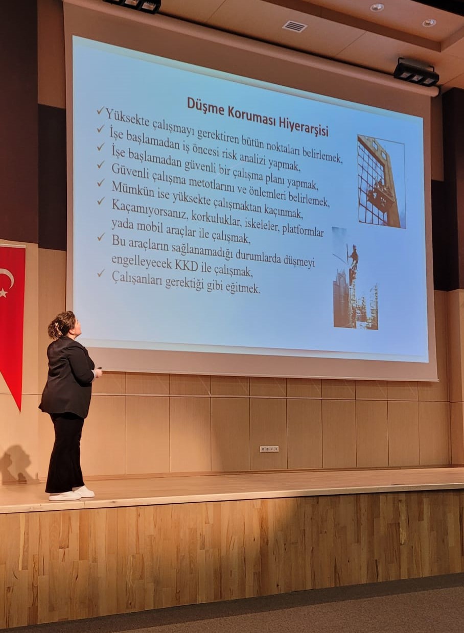 Eğitimde, yüksek alanlarda çalışan personelin güvenliğini sağlamak amacıyla teorik ve uygulamalı bilgiler paylaşıldı. Üniversitemizin farklı birimlerinden 92 personelin katılım gösterdiği eğitimde; yükseklik kavramı, düşme riskleri, güvenli çalışma yöntemleri, kişisel koruyucu donanımların (KKD) doğru kullanımı, yaşam hattı sistemleri ve düşmeyi önleyici ekipmanlar gibi konular ele alındı. Eğitimin teorik kısmı İş Sağlığı ve Güvenliği Koordinatörü ve A Sınıfı İş Güvenliği Uzmanı Öğr. Gör. Sibel Ersoy tarafından, uygulamalı kısmı ise Kürtün Meslek Yüksekokulu Sivil Savunma ve İtfaiyecilik Programı Öğr. Gör. Erdem Soylu tarafından verildi. Eğitim sonunda katılımcılara “Yüksekte Çalışma Eğitimi Katılım Belgesi” verildi.