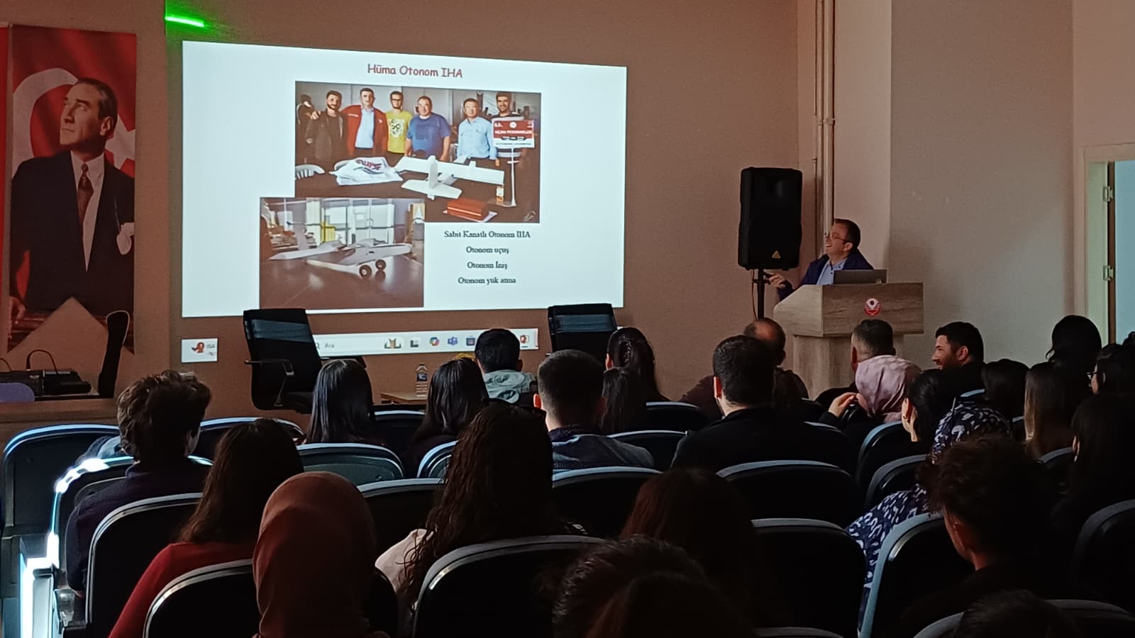 Programın sonunda, Uygulamalı Bilimler Yüksekokulu bahçesinde gerçekleştirilen “Hüma” insansız hava aracının uçuş gösterisi, gökyüzünü teknolojiyle buluşturan etkileyici bir an yaşattı. Gökyüzünde süzülen Hüma, genç havacılara hem ilham hem de cesaret verdi.