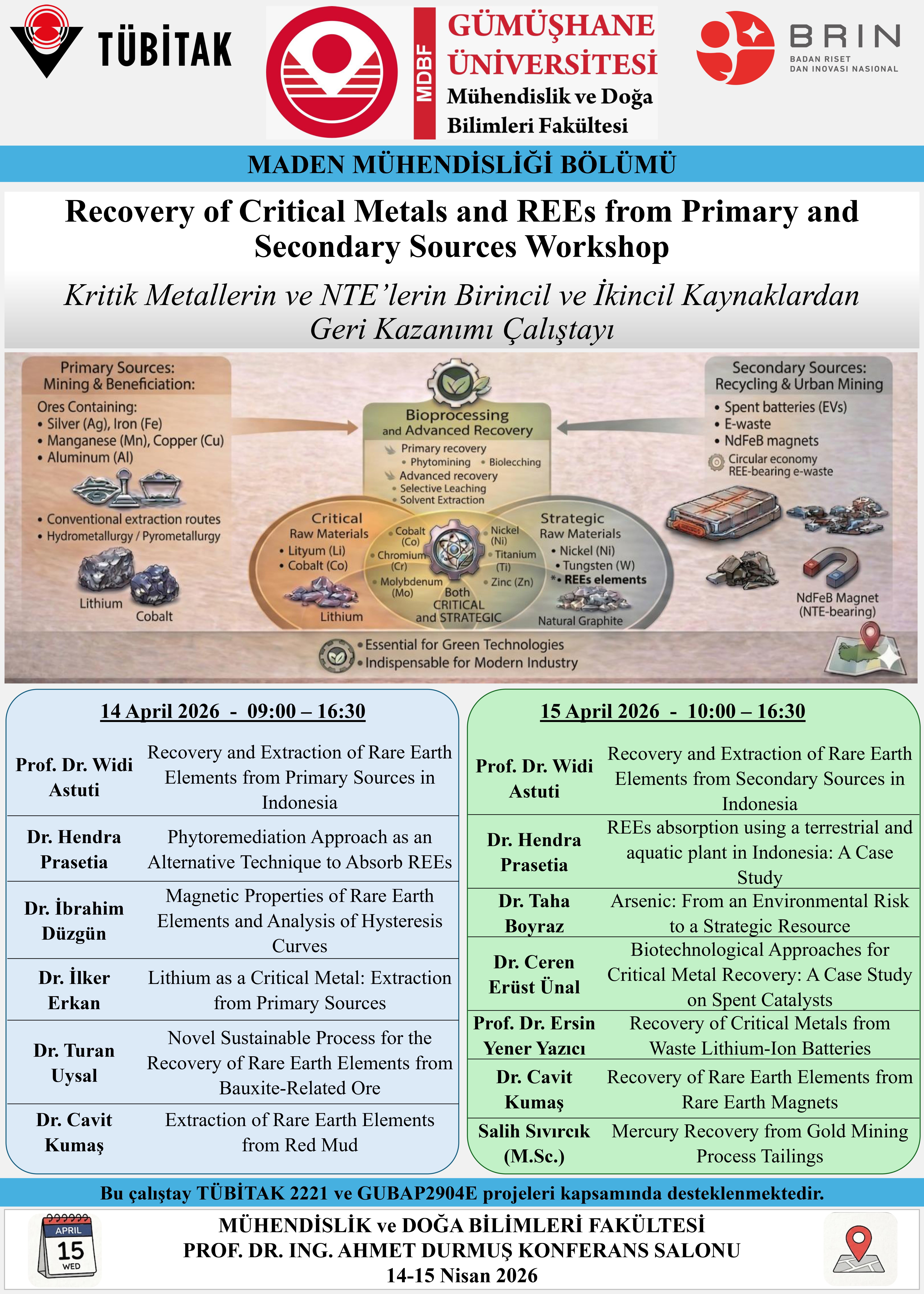 Kritik Metallerin ve NTE'lerin Birincil ve İkincil Kaynaklardan Geri Kazanımı Çalıştayı