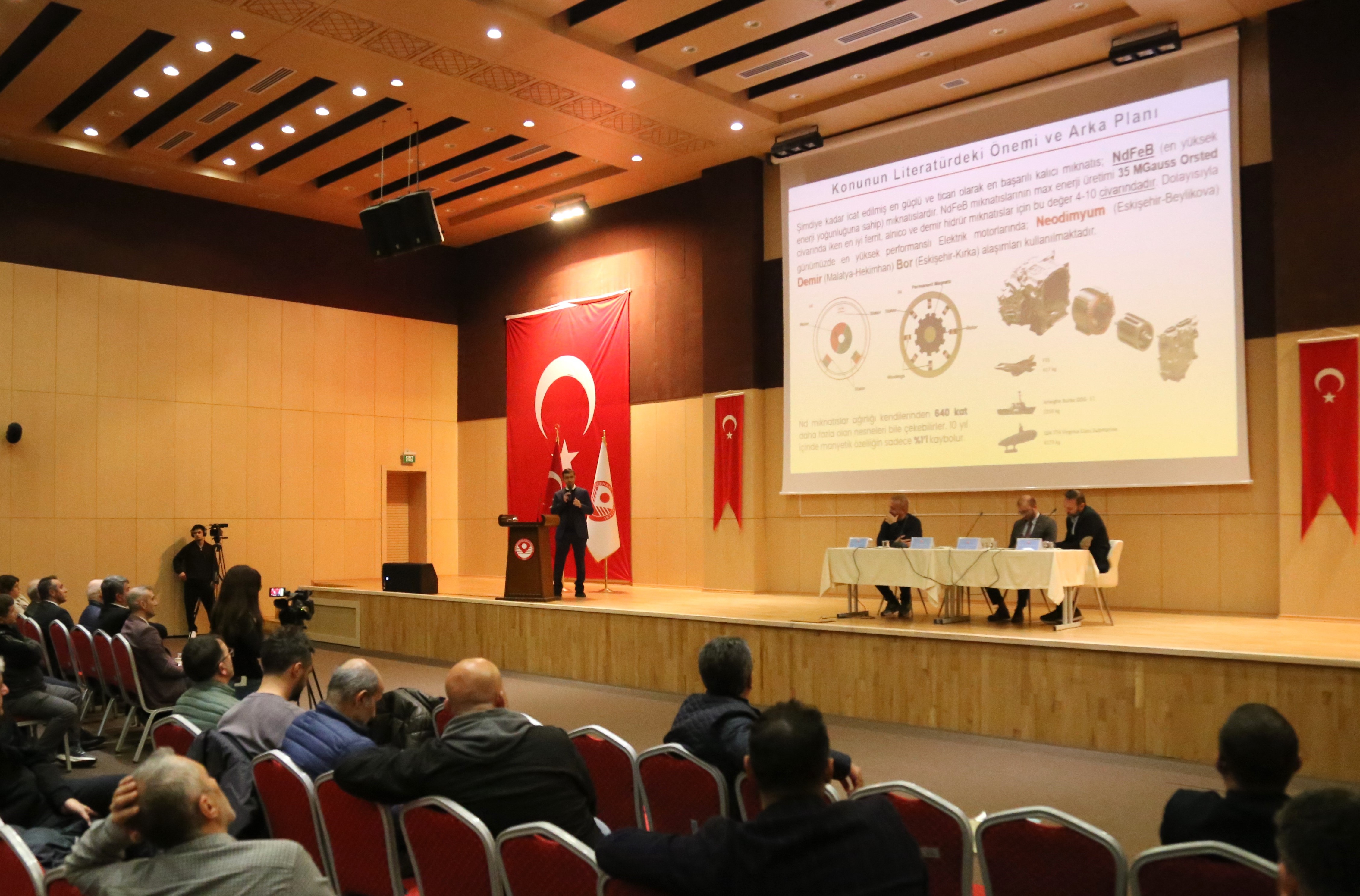 Ardından üniversitemiz Maden Mühendisliği bölümü öğretim üyesi Doç. Dr. Turan Uysal, “İkincil Jeolojik Kaynaklardan Nadir Toprak Elementi Kazanım Teknolojisi ve Güncel Değerlendirmeler” sunumuyla nadir toprak elementlerinin kazanım süreçlerindeki güncel yaklaşımları aktardı.