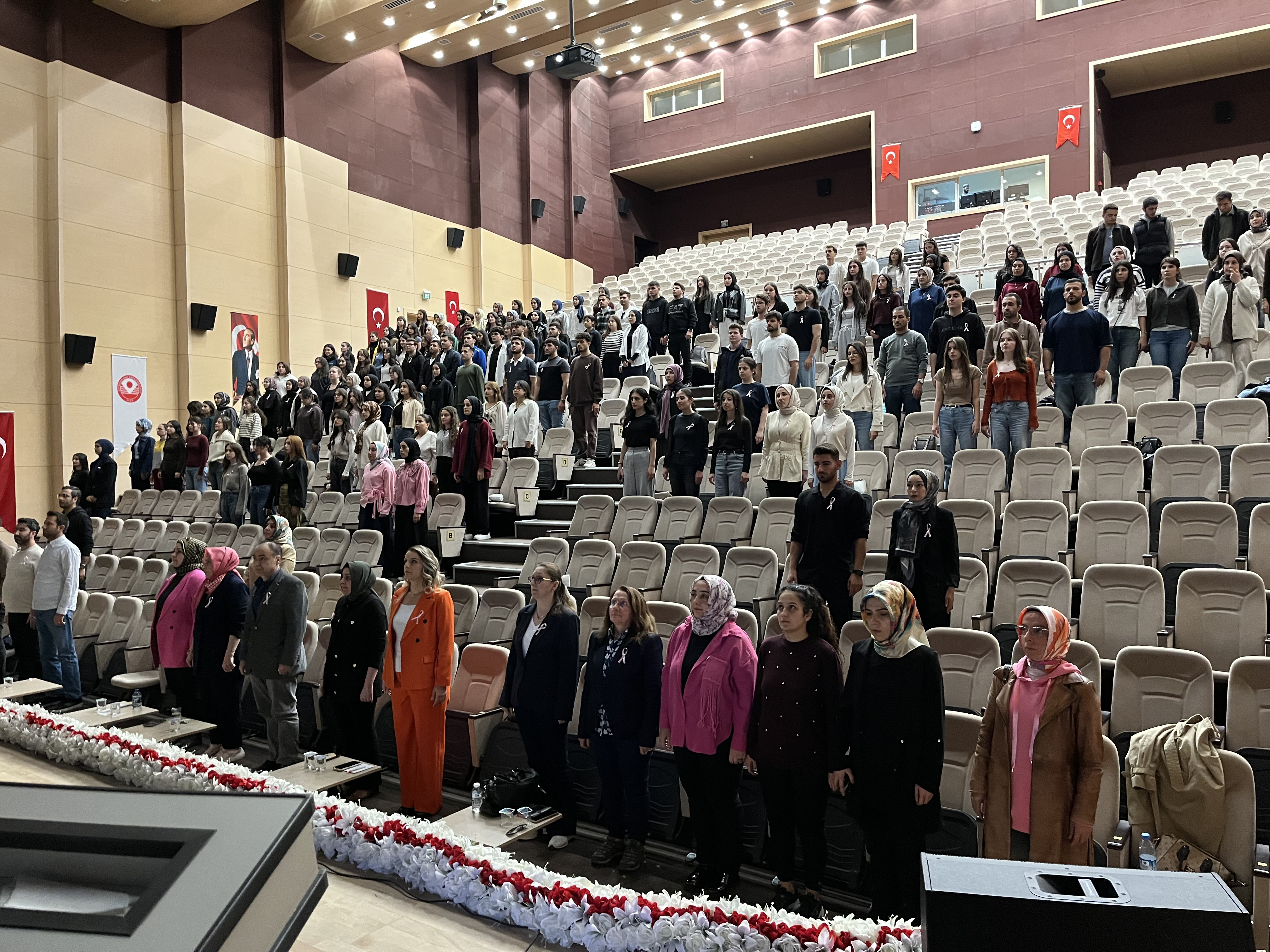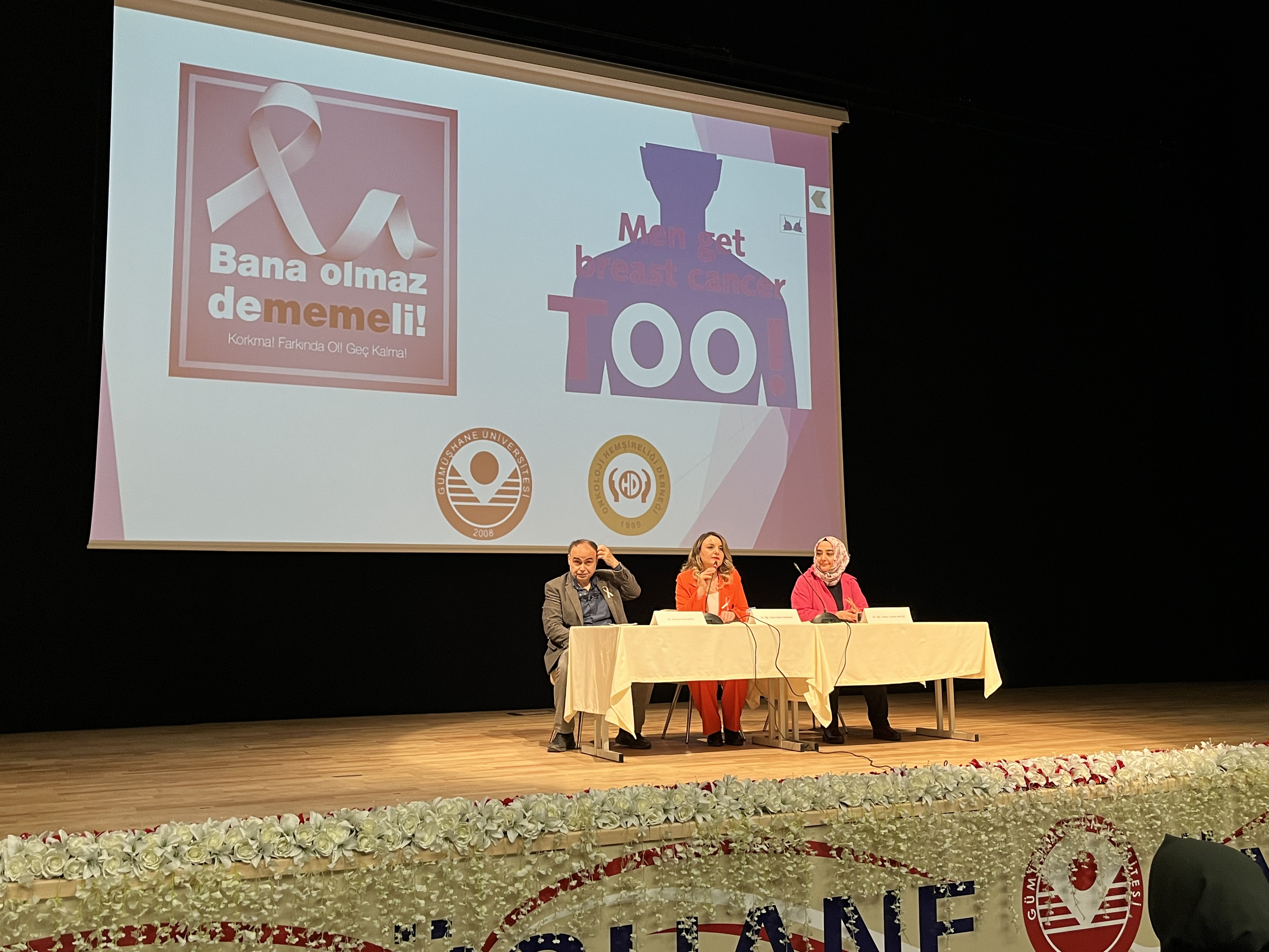 Hemşirelik Bölüm Başkanı Doç. Dr. Aydanur AYDIN da konuşmasında meme kanserinde erken tanının hem bireysel hem de toplumsal açıdan önemine dikkat çekerek şunları söyledi: “Meme kanseri, kadınlarda en sık görülen kanser türlerinden biri olmakla birlikte, erken tanı sayesinde tamamen tedavi edilebilen bir hastalıktır. Bu noktada hemşirelik mesleği, yalnızca bakımın uygulayıcısı değil, aynı zamanda eğitici ve farkındalık kazandırıcı bir role sahiptir. Bugün burada, öğrencilerimiz ve sağlık profesyonellerimizle bir araya gelerek erken tanının önemini vurgulamak, kendi bedenini tanıyan, bilinçli bireyler yetiştirmek en temel amacımızdır. Her bireyin kendi sağlığının sorumluluğunu alması, toplumsal sağlığın korunmasında da güçlü bir adım olacaktır. Gümüşhane Üniversitesi Sağlık Bilimleri Fakültesi Hemşirelik Bölümü olarak, bilimsel bilgiyle toplumsal duyarlılığı bir araya getiren bu tür eğitimleri yaygınlaştırmayı sürdüreceğiz. Çünkü biz biliyoruz ki; farkındalık, erken tanının ilk adımıdır.”