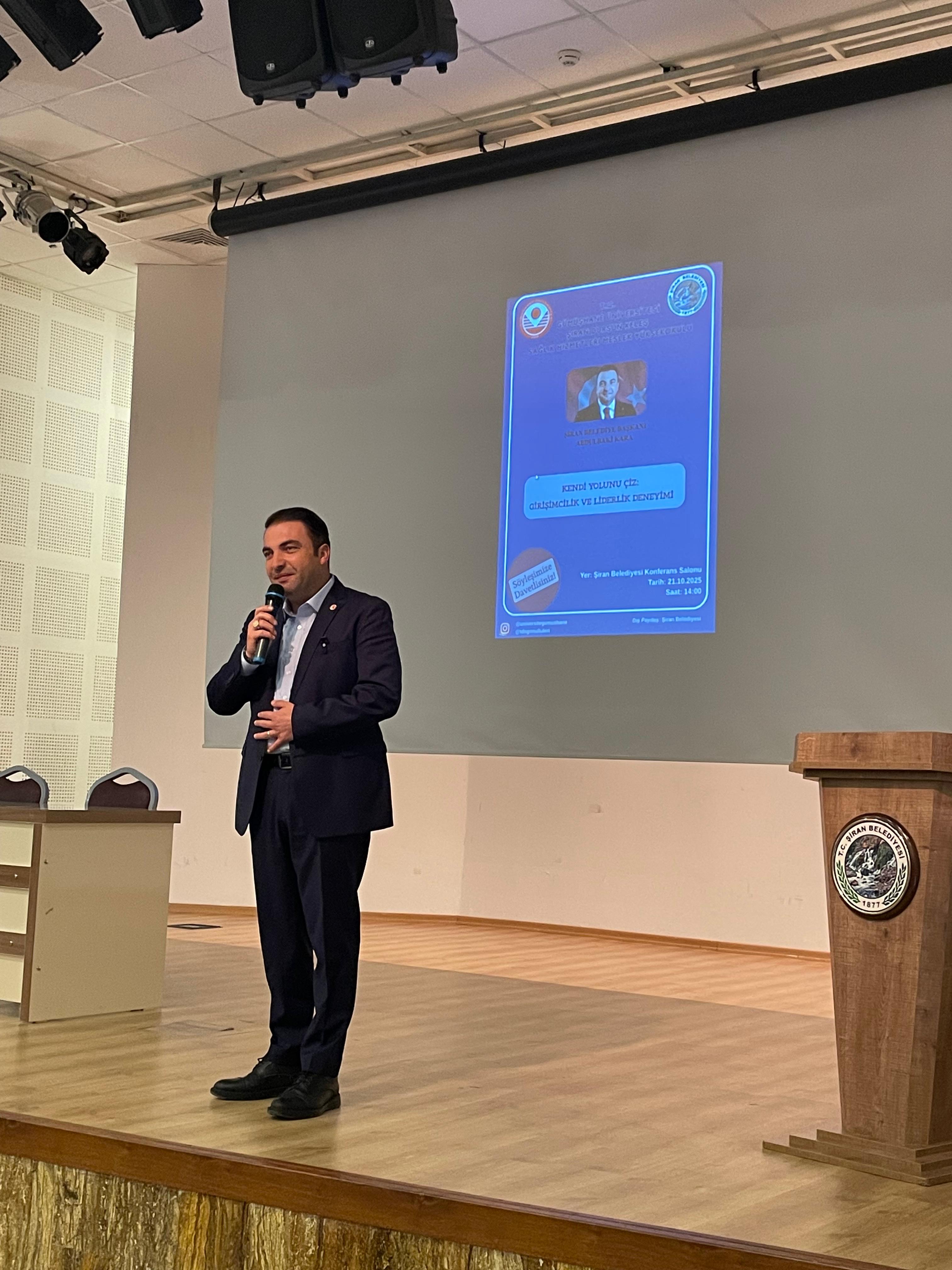 Etkinliğe “Kendi Yolunu Çiz: Girişimcilik ve Liderlik Deneyimi” başlıklı konuşmasıyla Şiran Belediye Başkanı Abdulbaki KARA katıldı. Girişimcilik serüveninden, hayata geçirdiği projelerden ve edindiği deneyimlerden söz eden Şiran Belediye Başkanı KARA, gençlerin hedeflerine ulaşma sürecinde kararlılık, vizyon ve yenilikçi düşüncenin önemine vurgu yaptı. KARA, öğrencilere girişimcilik yolculuklarında karşılaşabilecekleri zorlukları nasıl fırsata çevirebilecekleri konusunda önerilerde bulundu.