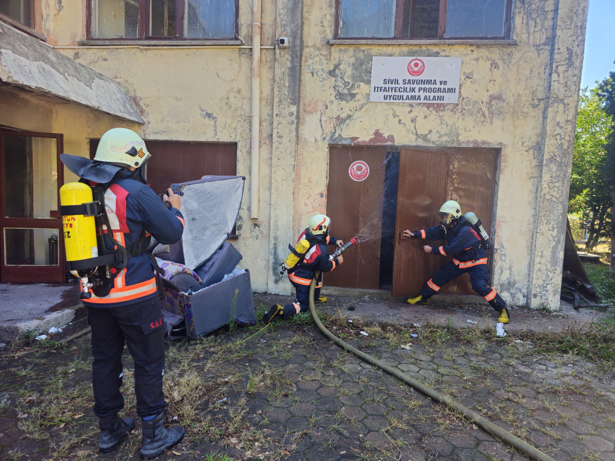 Saha eğitiminde, itfaiye personeli özellikle kapalı alan yangınları ve zorlu kurtarma senaryoları üzerinde pratik yaparak mesleki becerilerini pekiştirme fırsatı buldu.