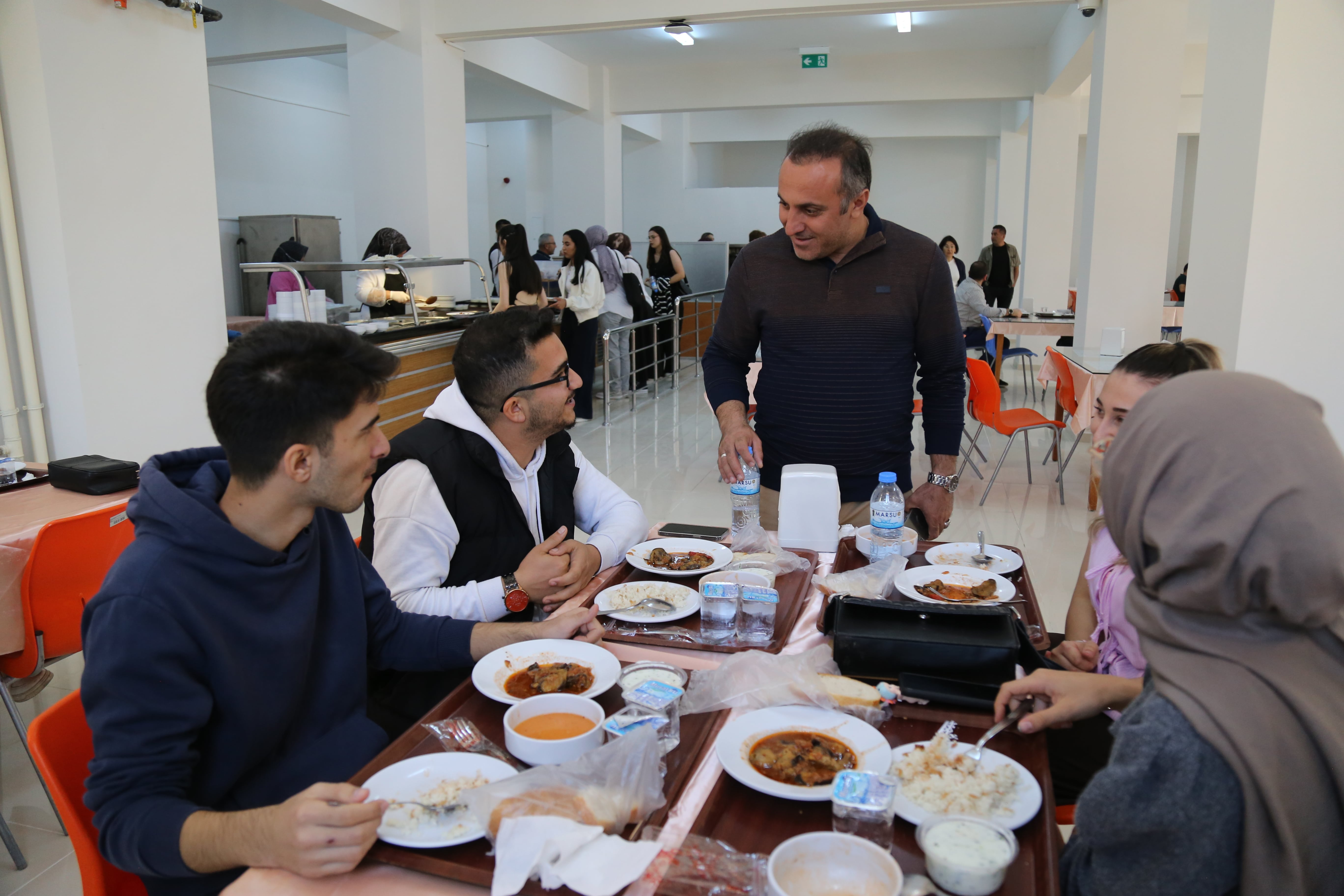 Yemekhanenin ilk gününde Rektörümüz Prof. Dr. Oktay Yıldız, Rektör Yardımcıları Prof. Dr. Rıdvan Şahin, Prof. Dr. Handan Çam ve Rektör Danışmanı Prof. Dr. Gülsüm Çalışır, öğrencilerimizle birlikte yemek yiyerek bu yeni mekânı deneyimlediler. Yeni yemekhane, konumunun işlevselliği ve modern konfor alanı ile dikkat çekti.